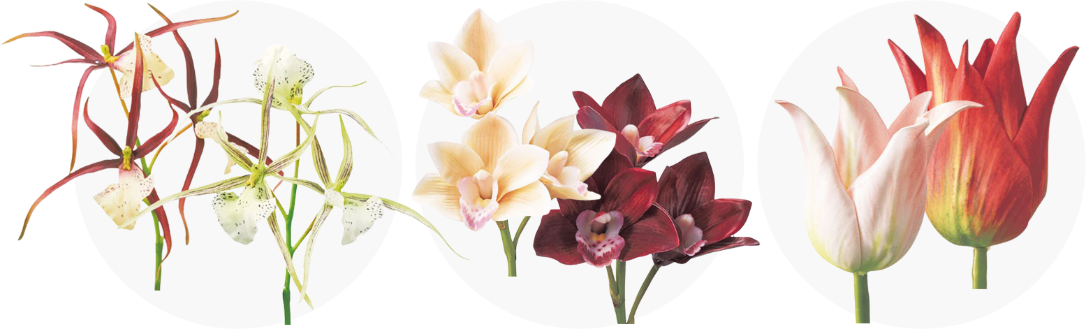 空間装飾などを手掛けるデコレーターの方々に向けて開発されたシリーズ。生花のような瑞々しさと透明感を兼ね備え、印象的で上質な空間を演出します。