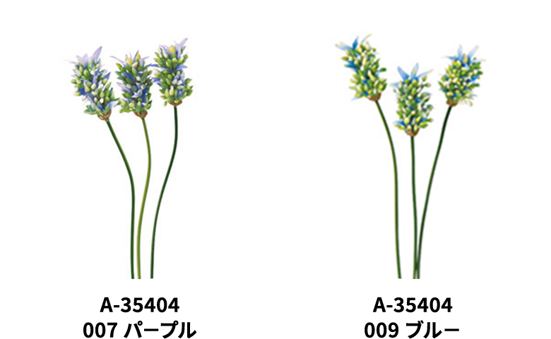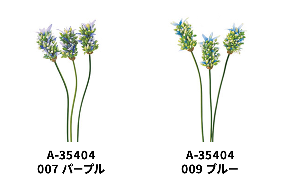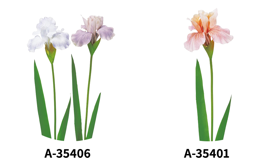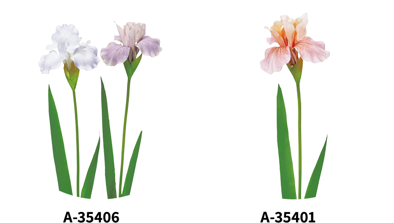 アーティフィシャルフラワーならではの色彩の自由度とトレンドを捉えたデザインライン。寒色と暖色の組み合わせが、視覚的リズムを生み出します。